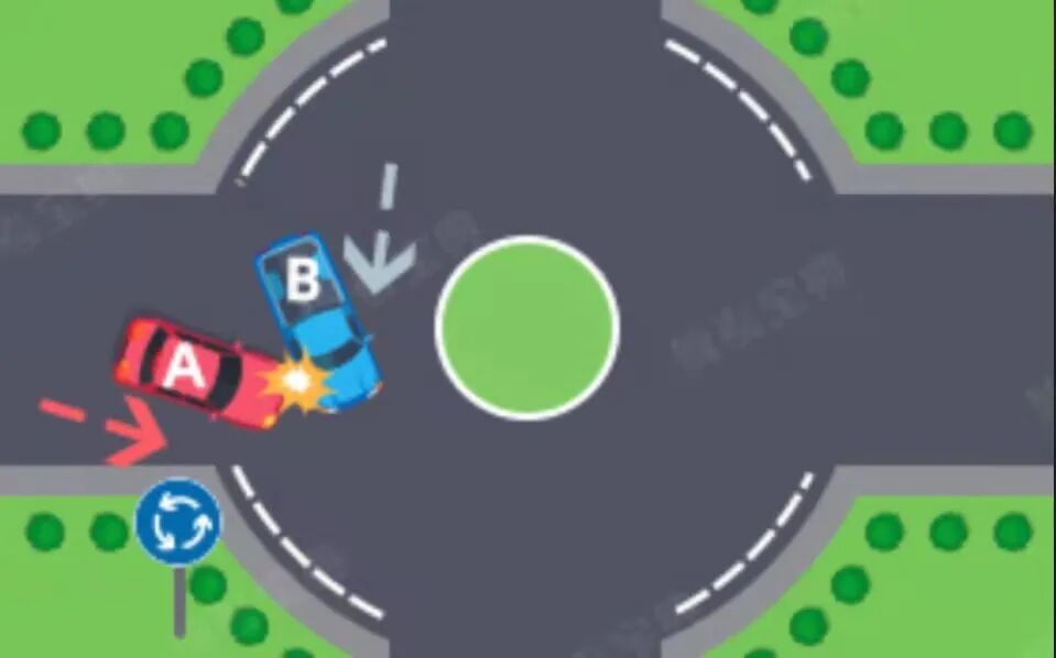 (十)进入环行路口的车未让已在路口内的车先行,均为A车全责。