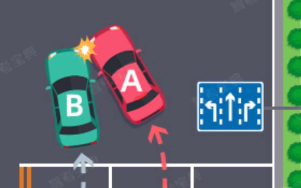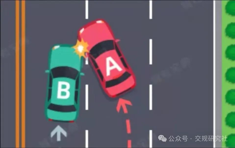 (二)变更车道时,未让正在该车道行驶的车先行的,图中所示为A车负全责。